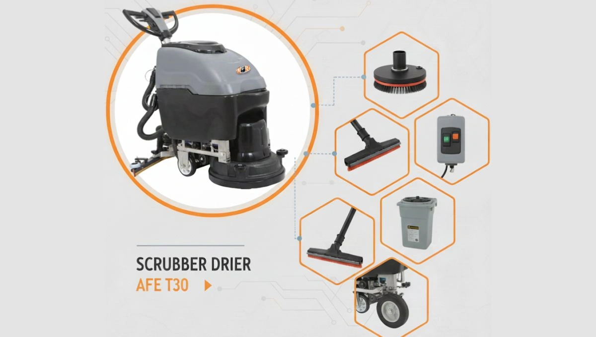 SCRUBBER DRIER AFE T30 Voltage Frequency230v/50HzWater Sucker855 mmBrush Diameter550mmRolling Brush Motor1000 WWater sucking Motor1000 WBrush ...